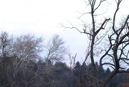 Осмотрев храм, решили оглядеться вокруг. За храмом внизу протекал Днепр, а слева очень далеко за лесистым массивом сиял стальным блеском памятник. Дома при сильном увеличении фотографии стал отчетливо виден контур воина с поднятым мечем, обращенный с вершины на Днепр. Но воин оказался Родиной-Матерью. Такой вот конфуз вышел со мной.